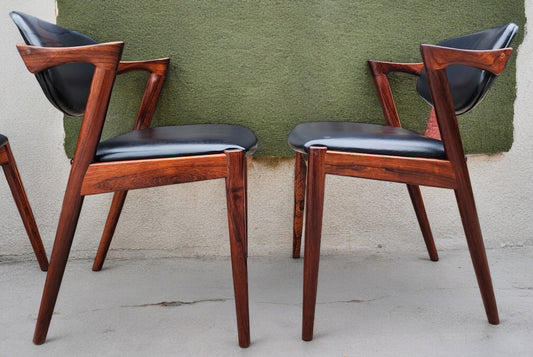 2 Danish Mid Century Modern Rosewood & Leather Chairs by Kai Kristiansen, Model 42