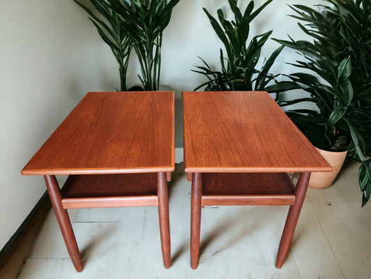 2 REFINISHED Mid Century Modern Teak End Tables w Shelves, Perfect