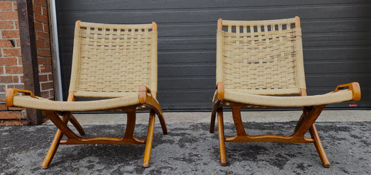2 Mid Century Modern Rope Folding Lounge Chairs Wegner style