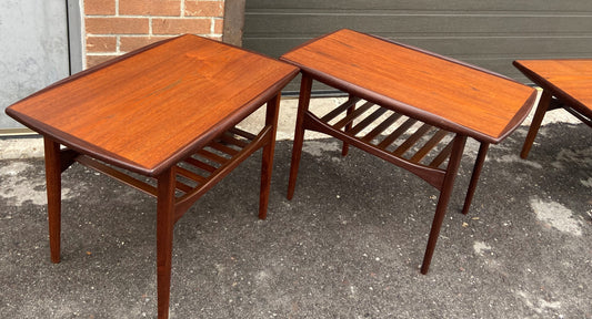 2 REFINISHED Mid Century Modern Teak Accent Tables with Shelves