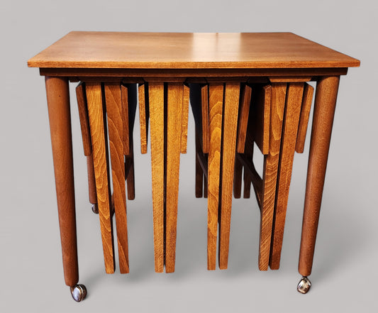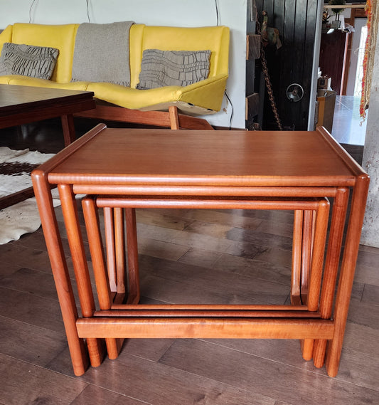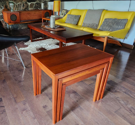 REFINISHED Danish Mid Century Modern set of 3 teak nesting tables, perfect