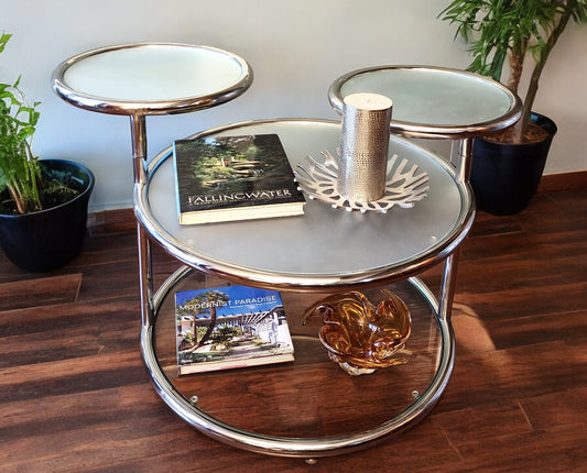 Mid Century Modern Milo Baughman Style Swivel Tiered Circles Coffee Table 29"-64"
