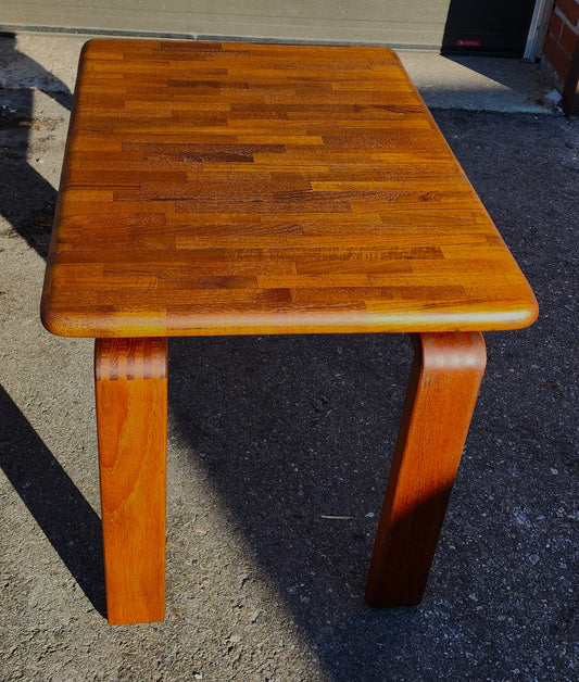 REFINISHED Danish Mid Century Modern SOLID Teak End Table, Floating Patchwork Design