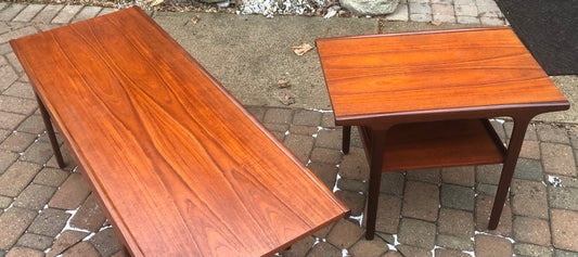 REFINISHED Danish Mid Century Modern Teak Coffee Table & Side Table with shelves, perfect