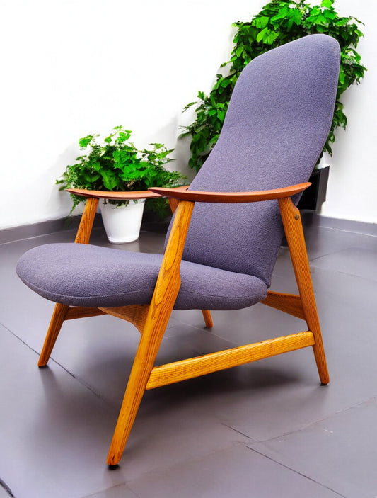 REFINISHED & REUPHOLSTERED in wool mohair MCM Lounge Chair, Perfect
