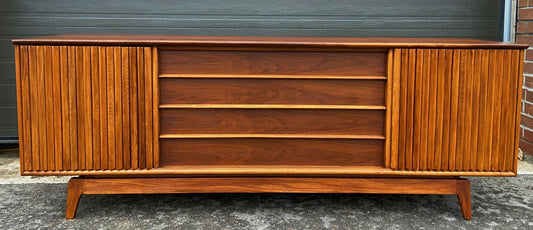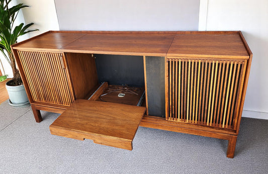 REFINISHED Mid Century Modern Walnut Media Record Player Console 74.5"