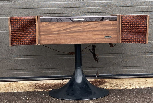 Vintage Space Age Sanyo Record Player Radio Stereo on Tulip Stand, Compact