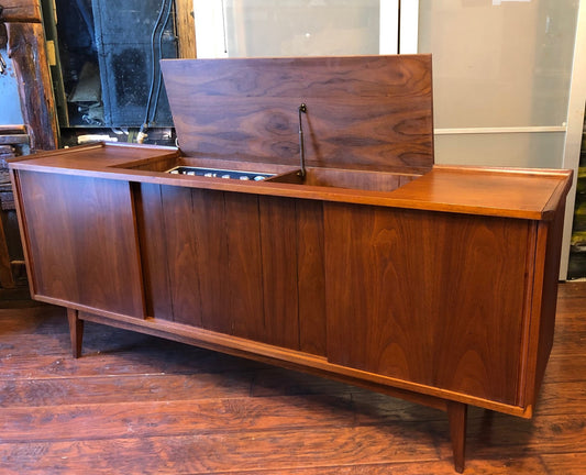 REFINISHED MCM Walnut Stereo Media Record Player Console , PERFECT