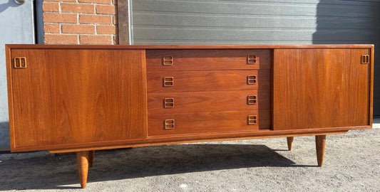 REFINISHED MCM Teak Sideboard w sliding doors & drawers by RS Associates, 72"perfect