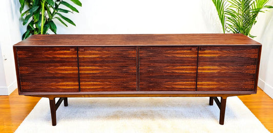 REFINISHED Mid Century Modern Brazilian Rosewood Sideboard Hertug by F. Kayser 86"