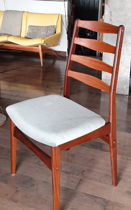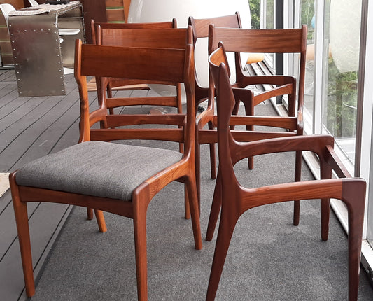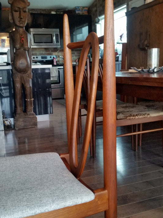 6 MCM Teak Chairs RESTORED, REUPHOLSTERED in grey, PERFECT, each $275