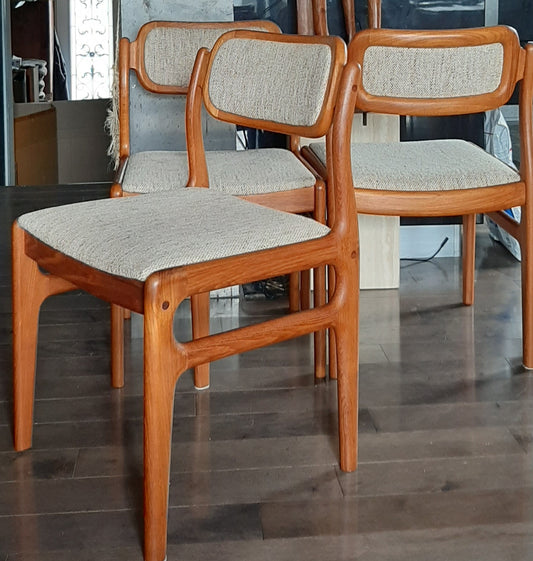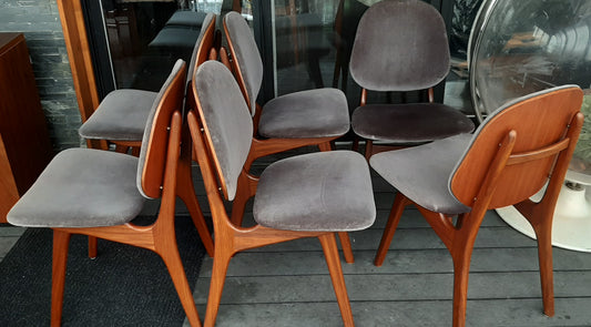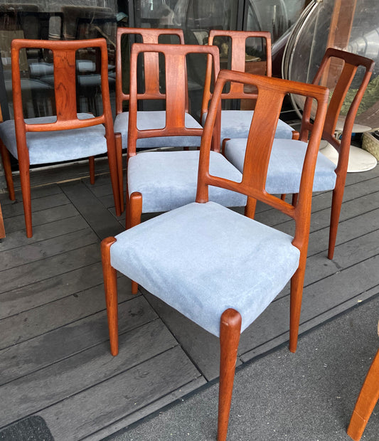 6 REFINISHED Danish MCM teak chairs N. O. Moller style, REUPHOLSTERED in wool mohair, PERFECT