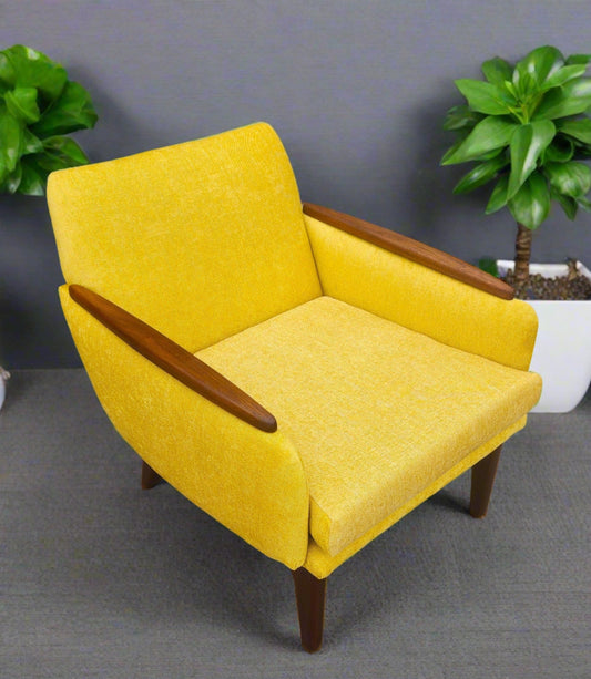 REFINISHED REUPHOLSTERED Mid-Century Modern Teak Armchair