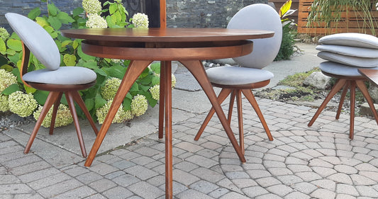REFINISHED REUPHOLSTERED MCM Walnut Lollipop Extendable Table 42"-94" & 4 Chairs