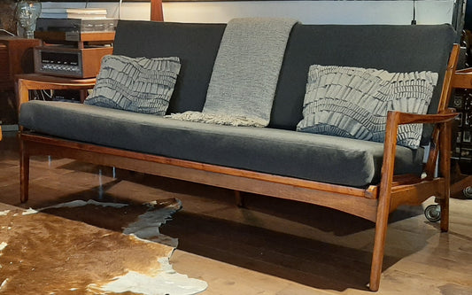 REFINISHED REUPHOLSTERED Mid Century Modern 3-Seater Sofa 6 ft Grey fabric PERFECT
