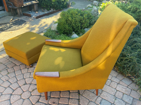 REFINISHED REUPHOLSTERED Mid Century Modern armchair & ottoman