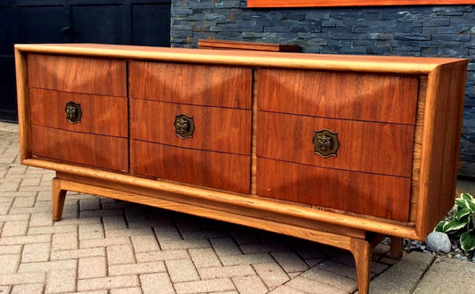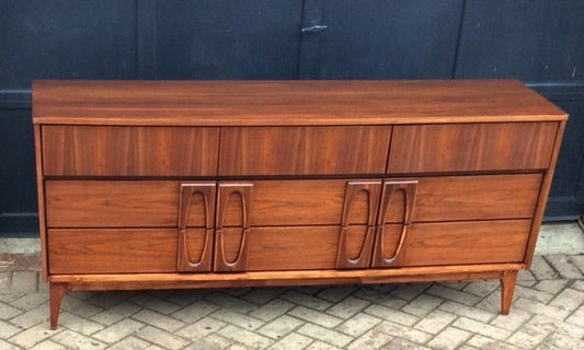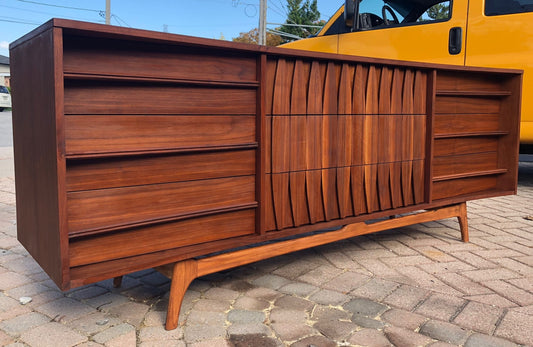 REFINISHED Sculptural MCM Walnut Dresser 9 drawers or Credenza 7ft perfect