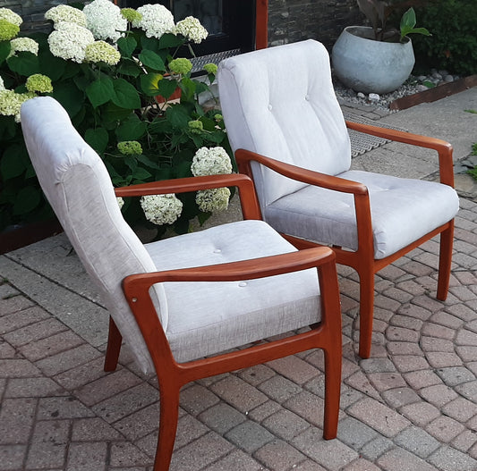 REFINISHED REUPHOLSTERED Pair of Mid Century Modern Teak Armchairs, Perfect