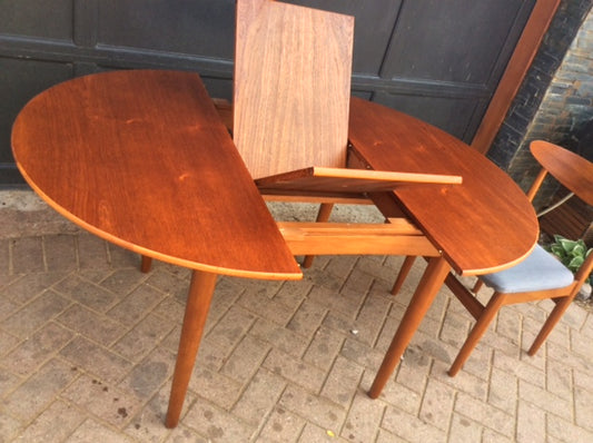 REFINISHED Small Danish MCM Teak Table Round to Oval w Butterfly Leaf 42"-57"