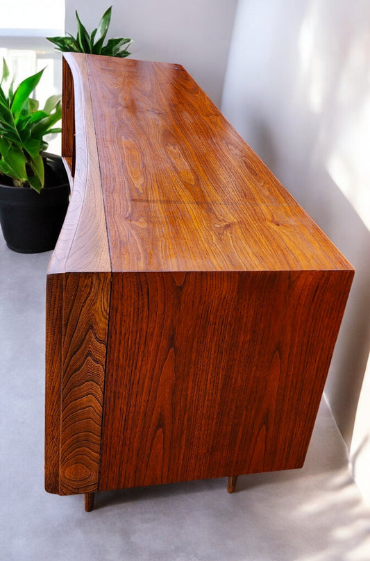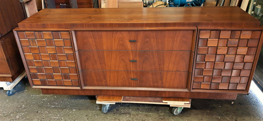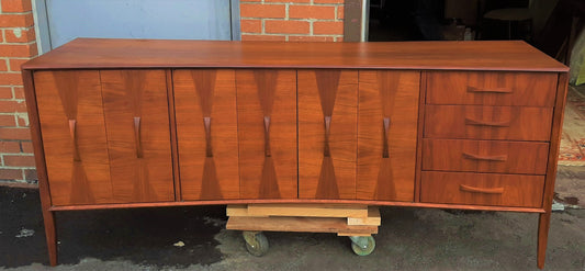 REFINISHED Unique Mid Century Modern Walnut Inlay Credenza 76"