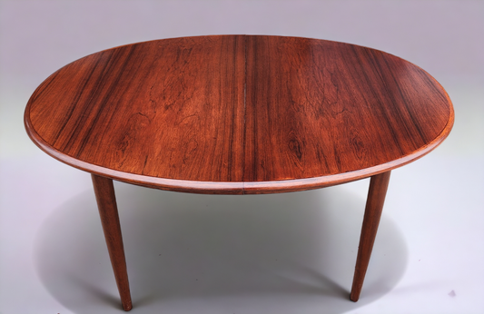 RESTORED Danish MCM Rosewood Table Oval w 2 leaves 58"-96" by GUDME