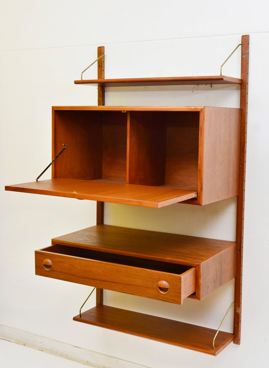 Restored Danish MCM teak modular wall unit with storage and display, PERFECT, CADO style