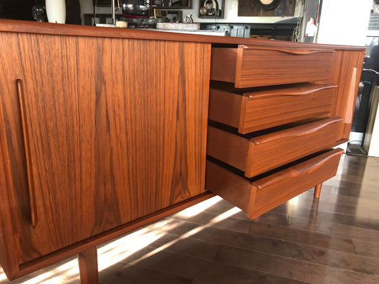 Restored Danish MCM Teak Credenza Console 63" perfect