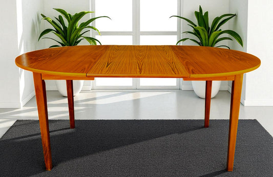 RESTORED Danish Mid Century Modern Teak Table Round w Leaf 43" - 64"