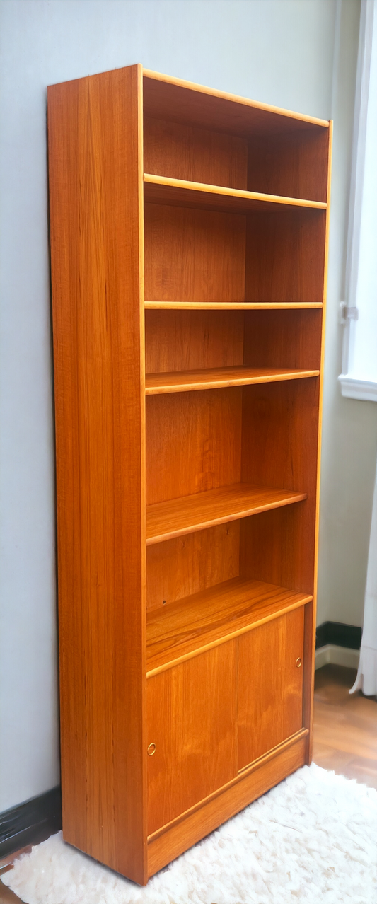 RESTORED Danish Mid Century Modern Teak Bookcase w doors H 76"