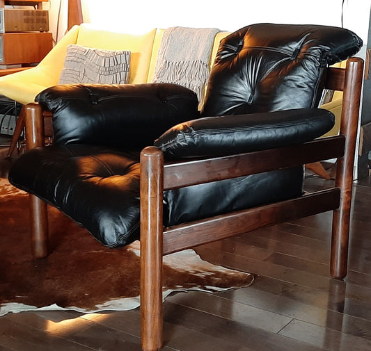 RESTORED Leather & Jacaranda Lounge Chair by Jean Gillon, made in Brazil, PERFECT