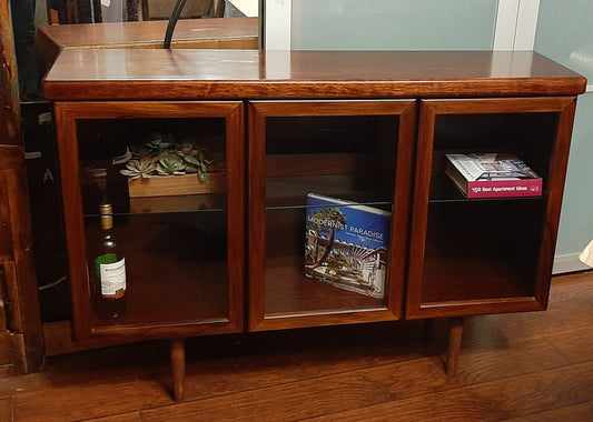 RESTORED MCM Rosewood Media Records TV Console with tinted glass doors