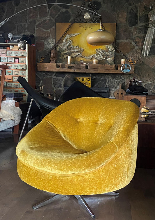 RESTORED MCM Round Swivel Chair Baughman Style in Mustard Yellow Wool Mohair