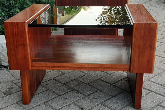 RESTORED MCM Rosewood Accent Table with tinted glass top