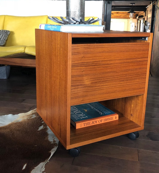 Restored Danish Modern Teak Rolling Filing or Bar cabinet small, perfect condition