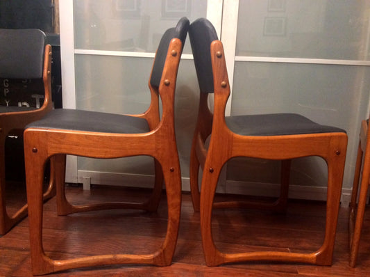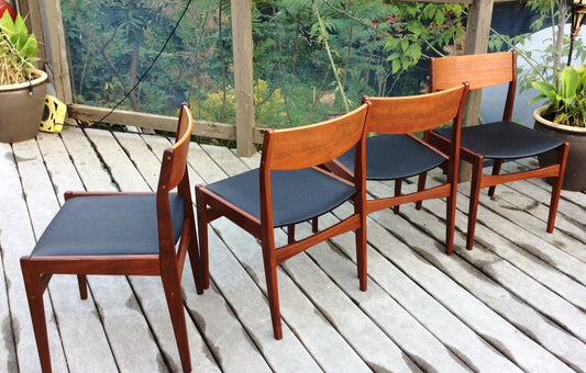 Set of 4 Mid Century Modern Danish Solid Teak Chairs REUPHOLSTERED with sleigh legs