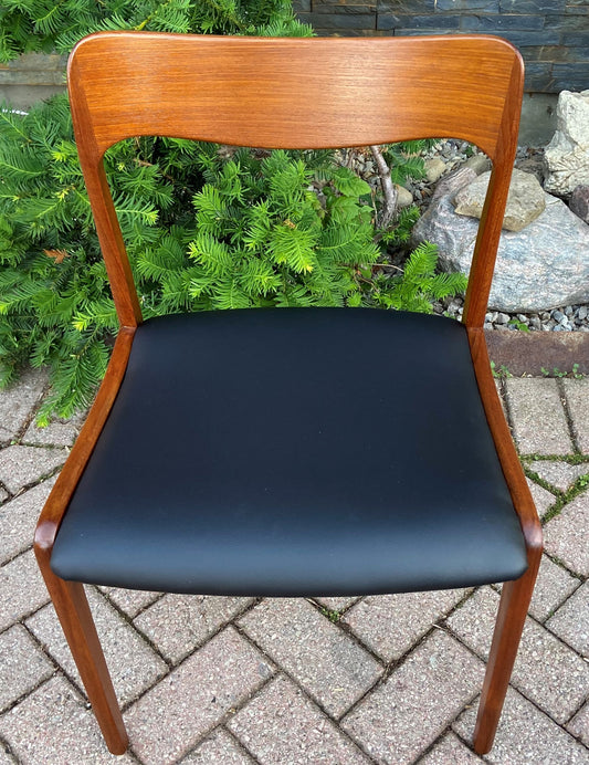 Single REFINISHED REUPHOLSTERED Danish Mid Century Modern Teak Chair, Moller style