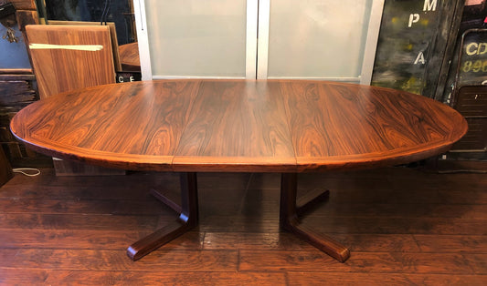 Set REFINISHED Danish MCM Rosewood Table Oval w 2 Leaves 70-109" & 6 Chairs, all perfect