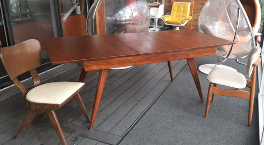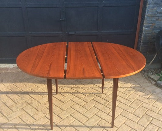 Small REFINISHED MCM Teak Table Round to Oval w 1 Leaf 40"-52"