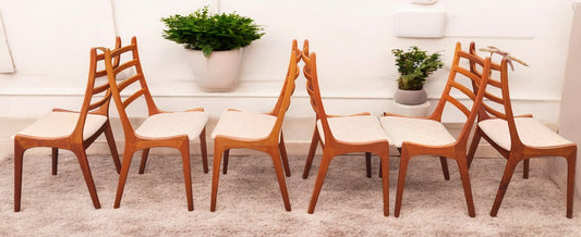 Choose Fabric***6 REFINISHED Danish Mid Century Modern Teak Chairs Ladder Back