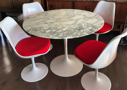 Authentic Knoll E. Saarinen marble tulip dining table round 42" and 4 Tulip chairs MINT, freshly polished and sealed, super sale