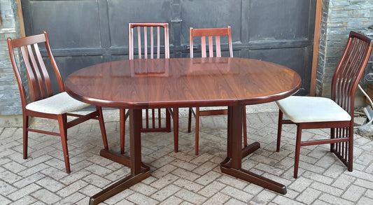 Danish MCM Rosewood Dining Table Extendable Round to Oval & 6 Chairs MINT