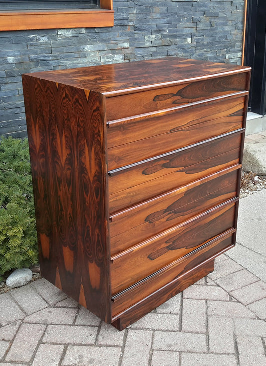 Danish MCM Rosewood Dresser Tallboy 5 Drawers RESTORED 32"