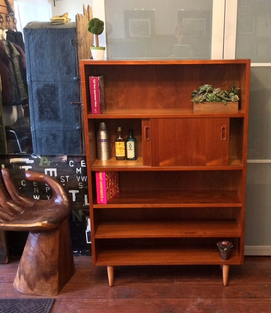 Danish MCM Teak Display Bookcase Bar Narrow REFINISHED 35.5"