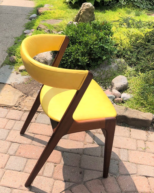 Danish MCM Teak Chair by Kai Kristiansen, model T21 REFINISHED REUPHOLSTERED in yellow leather