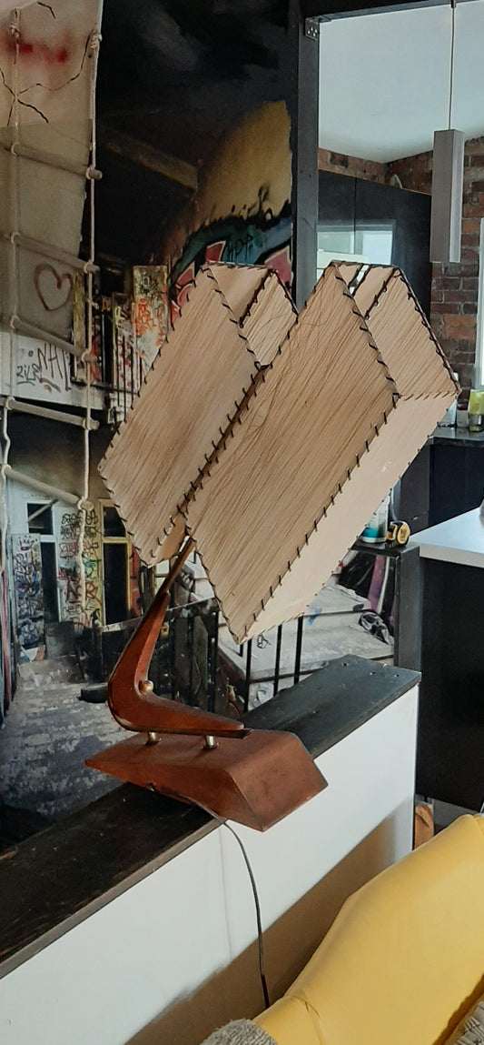 Large Mid Century Modern Atomic Boomerang “Z” Teak Table Lamp by Majestic