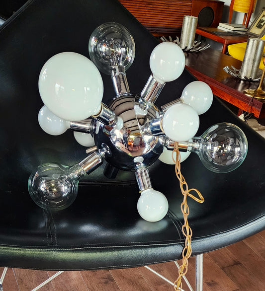 Mid Century Modern Chrome and Glass Sputnik Ceiling Chandelier with 12 lights, Space Age