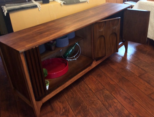 Mid Century Modern Broyhill Brasilia Style Walnut Sideboard with sculpted front
