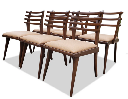 Mid Century Modern Russel Spanner Walnut Chairs (1 armchair 5 side chairs)