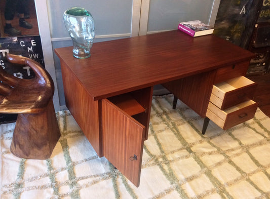 Mid Century Modern Mahogany or Teak Desk REFINISHED Free Standing