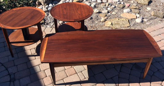 Mid Century Modern Set of Walnut Coffee Table & 2 End Tables REFINISHED
